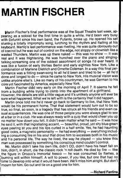 April 1980, obituary for Martin Fischer by B. Haye, Richard Fantina, photo: Klara Palotai